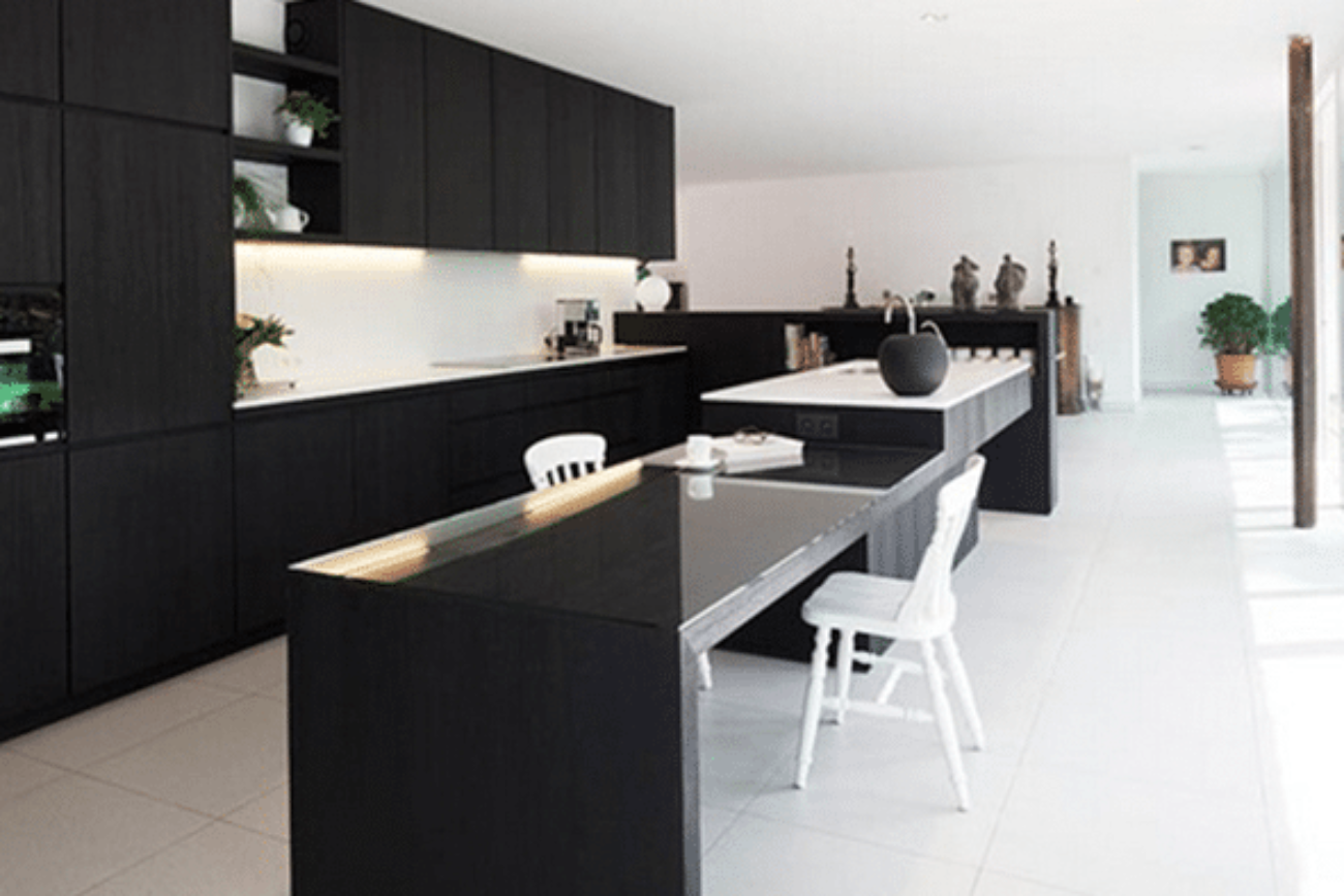 en choisissant votre plan de travail, vos portes, votre crédence, votre sol et vos murs.